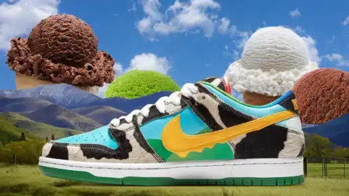 • Ben & Jerry’s x Nike SB Dunk Low “Chunky Dunky”, een kleurrijk eerbetoon aan de bekende ijsmaker
